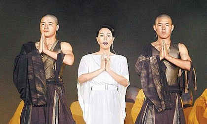 王菲(中)今年5月曾在陝西獻唱《心經》。