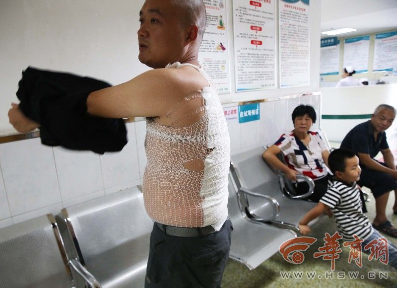 『售貨員也來了勁兒,指著楊先生,楊先生讓她別指。她又順手抄起一個玻璃杯砸過來,沒砸到,就端起桌上電熱壺裡的開水朝楊先生的臉上澆過來。幸虧楊先生閃了一下,但水還是從他的後背澆下來。也有一股水濺到了我的右腿上。』趙先生說。