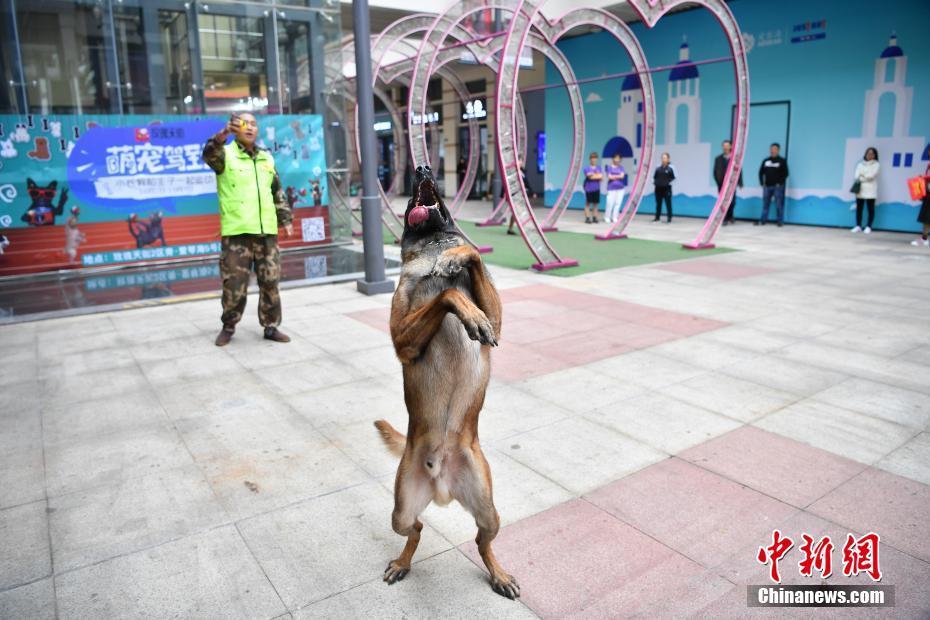 9月28日,汪星人在主人的指揮下直立倒退。當日,雲南昆明的犬主舉行聚會,交流養寵心得,展示訓練成果,並向市民宣傳文明科學養犬理念。中新社記者劉冉陽攝