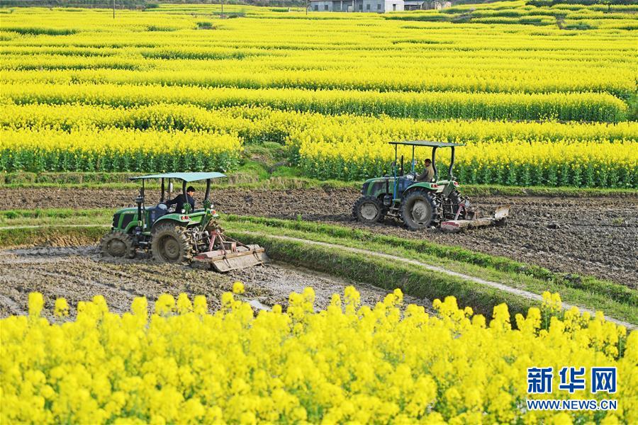 3月19日,在江西省宜春市袁州區彬江鎮英山村,農民駕駛農機在田間作業。春分將至,各地農民搶抓農時春耕春播,田間地頭到處是一派繁忙景象。新華社發(劉繼剛攝)